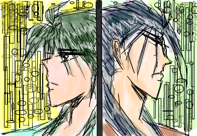 またまた 2007年11月27日 るろ剣関連 5 下手ですけどこりずに落描きvv るろ○藤さんとオリジナル○田さんとの組み合わせで(あくまで自称ですが)v 普通に描いてると時間はかかります。 もう昼飯食わないと病院に戻れないvvv てか、毎日外出している僕って・・・。 とかいいながら、ちゃっかり(-。-)y-゜゜゜と禁煙は何処へ~状態ですけどねvv 携帯からはこっちで。